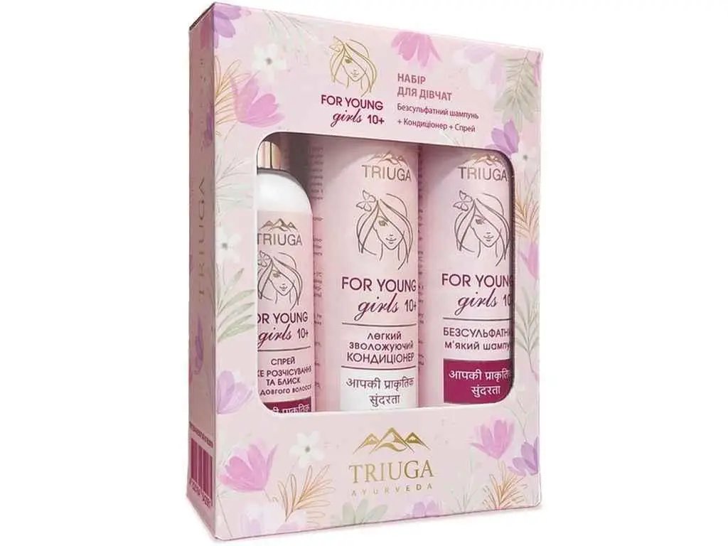 Спеціально для дівчаток у віці від 10 років експертами бренда Triuga був створений набір для догляду за волоссям Ayurveda For Young Girls. Засоби виготовлені на основі аюрведичних рецептур і містять активні компоненти натурального походження. Тому вони піклуються не лише про локони, а й про шкіру голови. Продукти роблять пасма шовковистими, блискучими та м'якими, а також полегшують розчісування і захищають їх від пошкоджень.