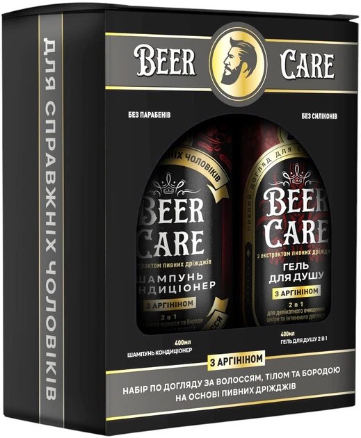 Склад набору: Шампунь-кондиціонер з аргініном – Beer Care, 400 мл + Гель для душу 2в1 з аргініном – Beer Care, 400 мл